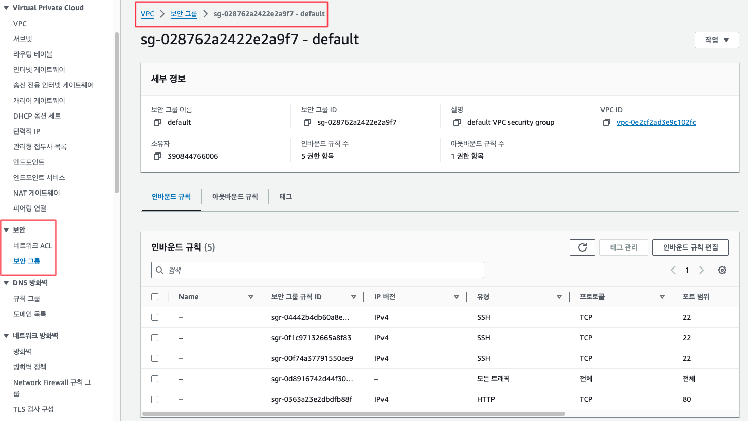 https://ap-northeast-2.console.aws.amazon.com/vpcconsole/home?region=ap-northeast-2#SecurityGroup:groupId=sg-028762a2422e2a9f7